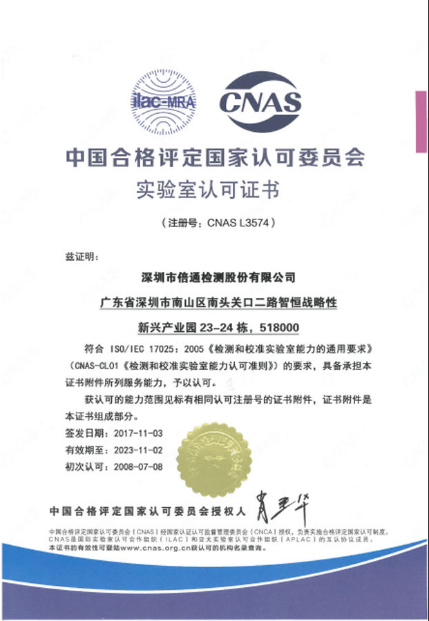 作為中國檢測認證行業位列前三甲的佼佼者,倍通檢測于2015年4月在新三板掛牌上市(股票代碼:832172),是國內領先的、綜合性的獨立第三方民營檢測服務機構,主要從事電子電器、日用消費品、新能源新材料、環境、食品(籌建中)等領域的技術檢測認證服務,廣受合作伙伴信賴與贊賞。