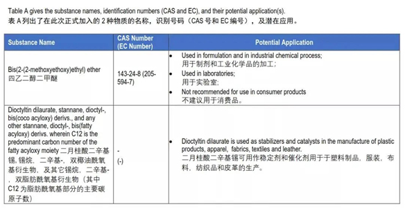 新增SVHC候選物質(zhì)見(jiàn)下表